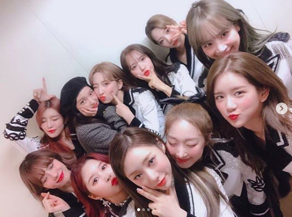 사진 속에서 성소는 행복한 미소를 지으며 우주소녀와 함께 사진을 찍고 있는 모습이다.