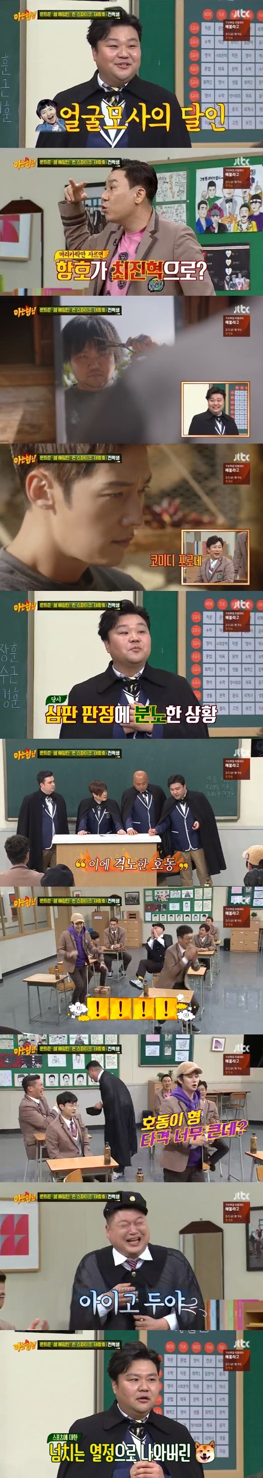 강호동은 태항호가 등장하자마자 그와 닮은꼴 "조정린"을 외쳐 웃음을 자아냈다.