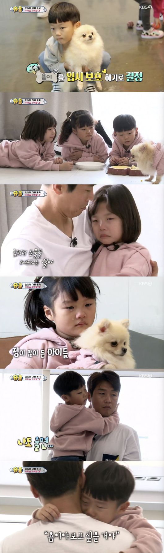 27일 오후 방송된 KBS2 ‘해피선데이-슈퍼맨이 돌아왔다’에서는 임시보호를 하고 있던 강아지 욤이와 작별을 하는 설아, 수아, 시안이의 모습이 그려졌다.
