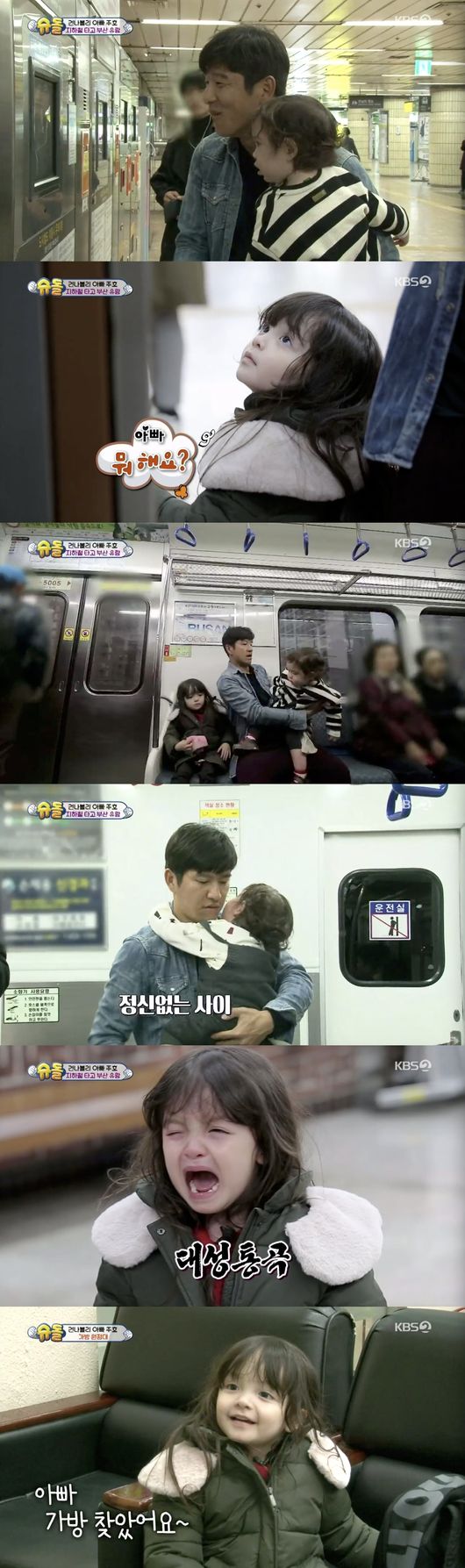 '슈퍼맨이 돌아왔다' 나은과 건후가 잃어버린 가방을 찾으러 지하철 투어를 했다.