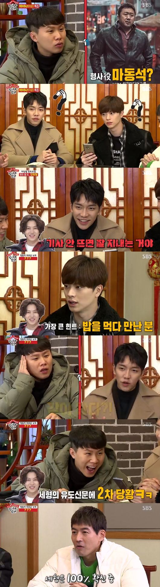 이날 멤버들이 대림동 차이나타운을 방문했다. 영화 '범죄도시'의 배경지였다. 멤버들은 혹시 '범죄도시'에 나온 배우와 관련된 사부일지 궁금해했다. 마동석과 윤계상으로 추축하는 가운데, 힌트요정으로 김희철이 등장했다.