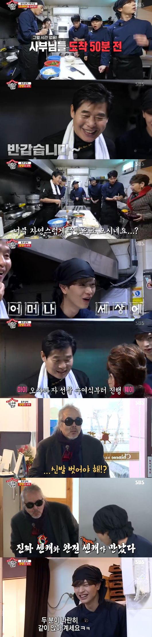 초대하고 싶은 사부들에 대해 고민했다. 이연복은 "개인적으로 좋아하는 사람은 이선희"라고 했고, 바로 이승기가 연락을 취했다. 하지만 이선희가 공연연습으로 방문이 불가하자고 하자, 이연복이 실망했다. 이후 나중에 따로 공연 뒤풀이로 간다고 하자 이연복은 "내가 쏘겠다"며 이선희 팬임을 밝혔다. 다음은 박지성에게 전화를 걸었다. 하지만 박지성도 가족들과의 스케줄로 참석을 보류시켰다. 모두 새해인사를 전하자 박지성은 "사부 이름에 먹칠하지 않는 사부가 되겠다"며 감사인사를 전했다. 다음은 전인권이었다. 중식만찬을 대접해줄 것이라 하자, 전인권은 밴드 문제가 있음에도 참석할 것이라고 했다. 모두 감동했다. 그러면서도 "김수미 사부님과 어떤 케미를 보일지 궁금하다"면서 흥미로워했고, 바로 김수미에게 전화를 걸었다.