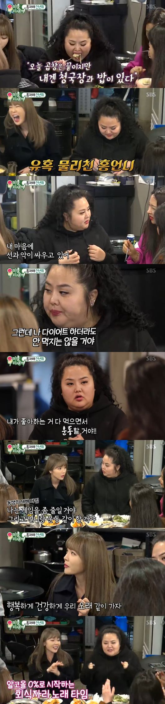다시 분위기를 전환시켜, 두 사람은 흥에 빠졌다. 특히 홍언니는 "다이어트 하더라도 먹긴 먹을 것"이라면서