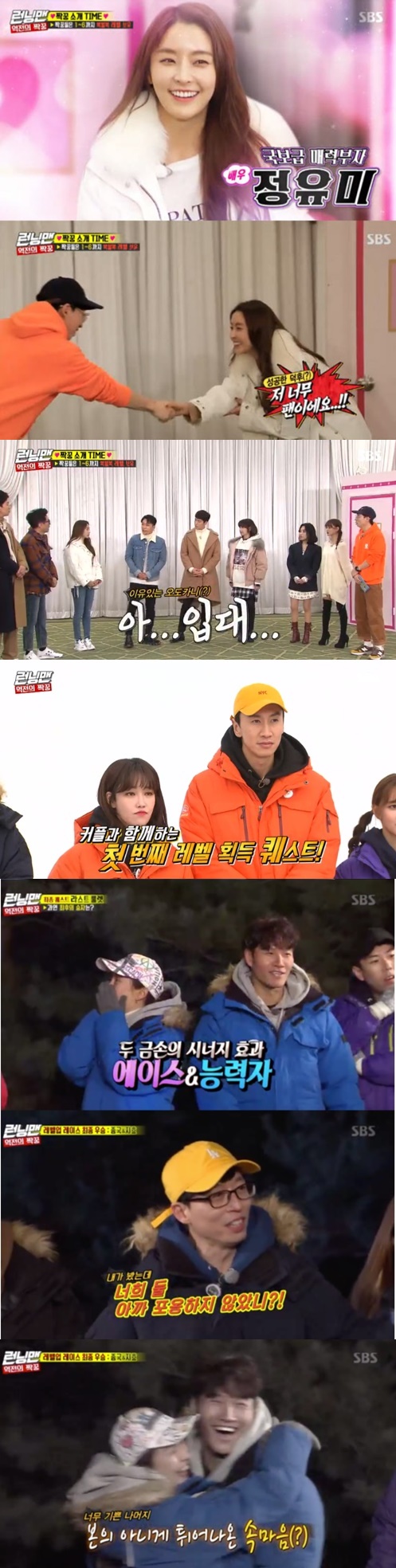 게스트별로 레벨 등급이 정해진 가운데, 정유미가 6레벨로 가장 높아 출연자들끼리 치열한 쟁탈전이 벌어졌다. “유재석이 결혼한 날 펑펑 울었다”는 정유미는 결국 유재석과 짝꿍이 성사됐고, 전소민X홍종현, 김종국X송지효, 하하X민아, 양세찬X지민, 지석진X승리, 이광수X이유리가 최종 짝꿍이 됐다.