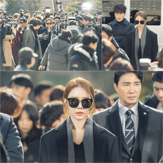 이는 극 중 예상치 못한 스캔들에 휘말려 검찰에 출두한 대한민국 대표 배우 오윤서의 모습을 담은 것. 늘 웃음기가 가득했던 오윤서의 창백한 낯빛이 그에게 위기가 닥쳤음을 느끼게 한다. 그런가 하면, 그를 둘러싼 수많은 기자들의 뜨거운 취재 열기가 오윤서의 사회적 파급력을 증명해주는 듯 하다. 이에 절정의 인기를 누리고 있던 우주여신 오윤서가 검찰청을 찾은 이유는 무엇일지 관심이 높아지고 있다.