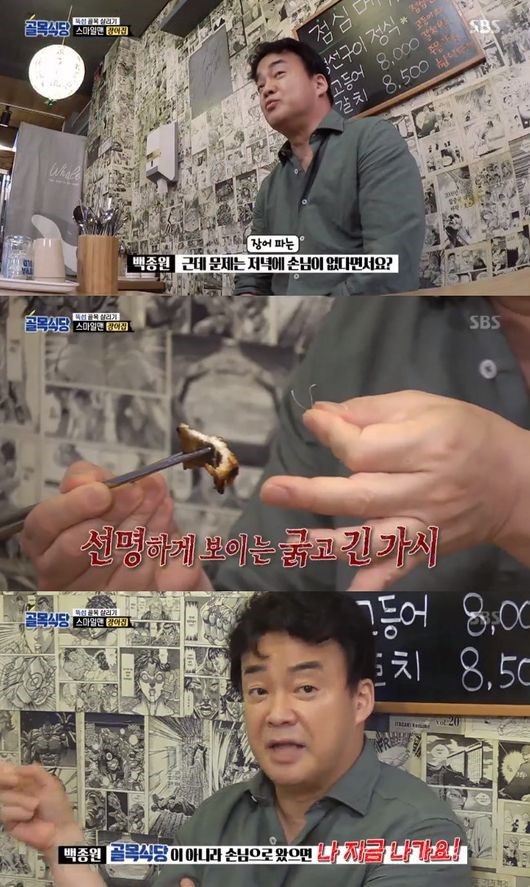 장어집 사장은 전날 고등어와 장어를 구워두고 주문이 들어오면 전자레인지에 데워서 손님에게 내놓는 모습으로 기대 이하의 요리 실력과 조리 환경으로 백종원의 질타를 받았다. 특히 제작진이 방문했을 때는 소고기가 들어있지 않은 미역국을 내놓았지만, 백종원이 방문했을 때는 의도적으로 소고기를 많이 넣은 미역국을 넣었다는 사실이 알려지며 백종원은 물론, 시청자들에게도 방송을 의식했다는 비난을 받았다.