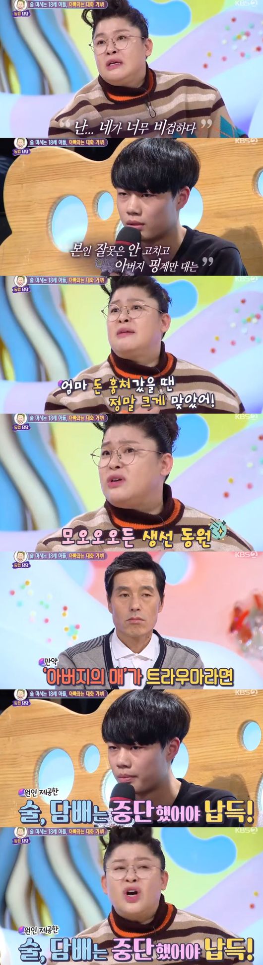 아버지는 "18세 아들이 매일 술 심부름을 시킨다. 회사에서 일하고 있는데 퇴근할 때 술 좀 사다 주시면 안돼요 한다. 넌 아들이고 난 아빠고. 아빠한테 아들이 술 심부름 시키는게 어디에 있어 뻔뻔스럽기도 했다"고 말했다.