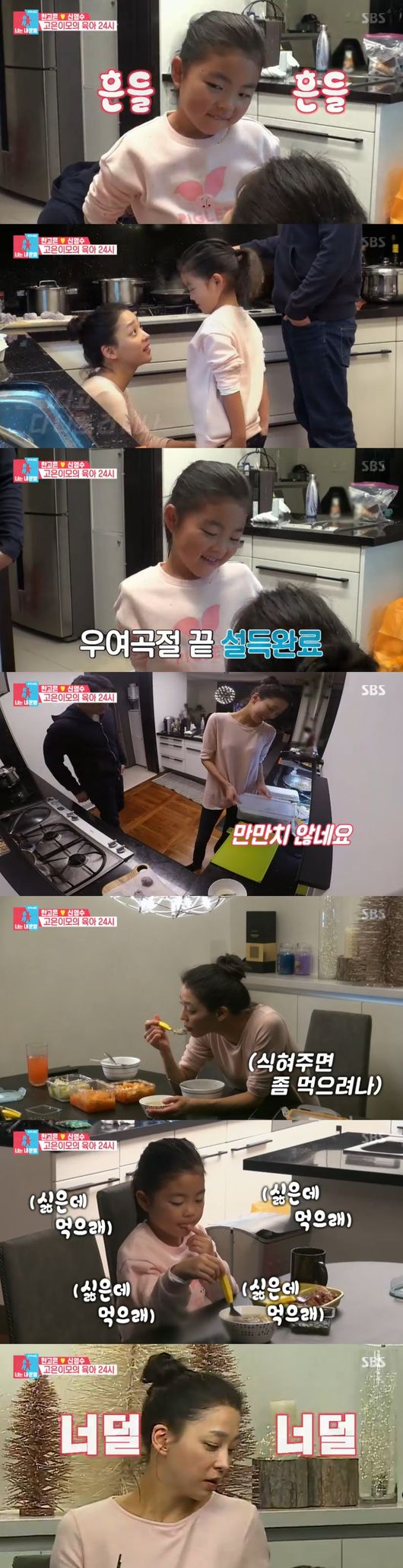 나중에서야 한고은은 "말은 저렇게 했지만 속에서 열불이 났다"면서도 "자주 못 보는 조카에게 훈육하거나 가르치고 싶지 않았다"고 했다. 다시 느낀 육아의 벽이었다. 그럼에도 한고은은 조카의 눈높이에서 포기하지 않았다. 그래서일까, 조카는 나중에서야 미소를 찾으며 편식을 줄여갔다. 이후 한고은은 남편 영수와함께 조카재우기까지 성공했다.