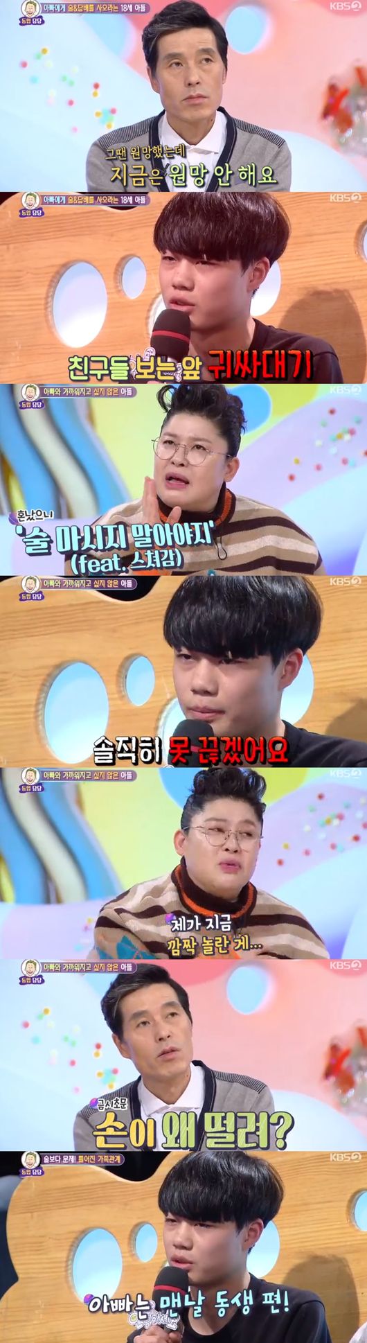 아버지는 "18세 아들이 매일 술 심부름을 시킨다. 회사에서 일하고 있는데 퇴근할 때 술 좀 사다 주시면 안돼요 한다. 넌 아들이고 난 아빠고. 아빠한테 아들이 술 심부름 시키는게 어디에 있어 뻔뻔스럽기도 했다"고 말했다.