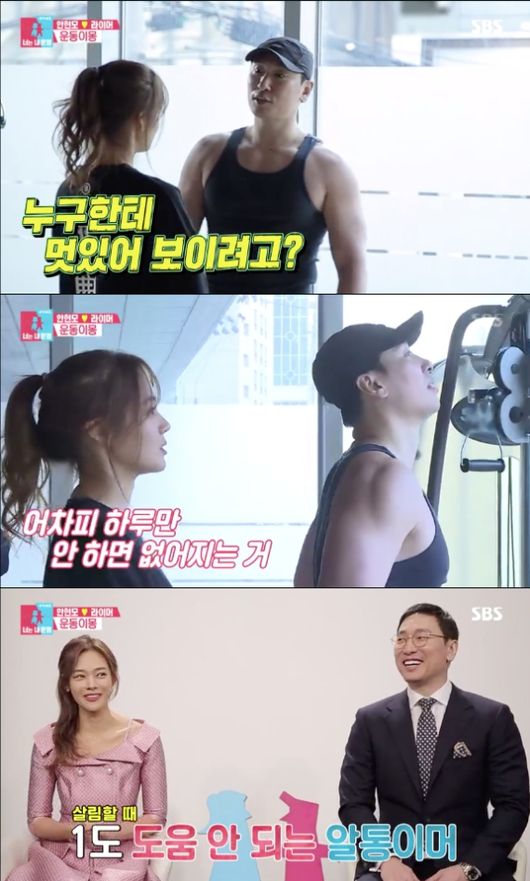 그러면서도 안현모는 라이머의 지도를 받으며 PT를 했다. 얼굴엔 웃음이 끊이지 않았다. 운동하는 남편이 이해안된다고 하지만 운동을 하며 남편과 시간을 보내는 것이 좋은 눈치였다. 물론 근육에 대한 생각은 달랐다. 안현모는 근육 있는 남자에게 매력을 못 느낀다고 말했다. 그러면서 "살림할 때 남편이 근육을 키우면서 아무런 도움을 안 주더라. 근육을 키워선 누워 있더라"라고 덧붙였다.