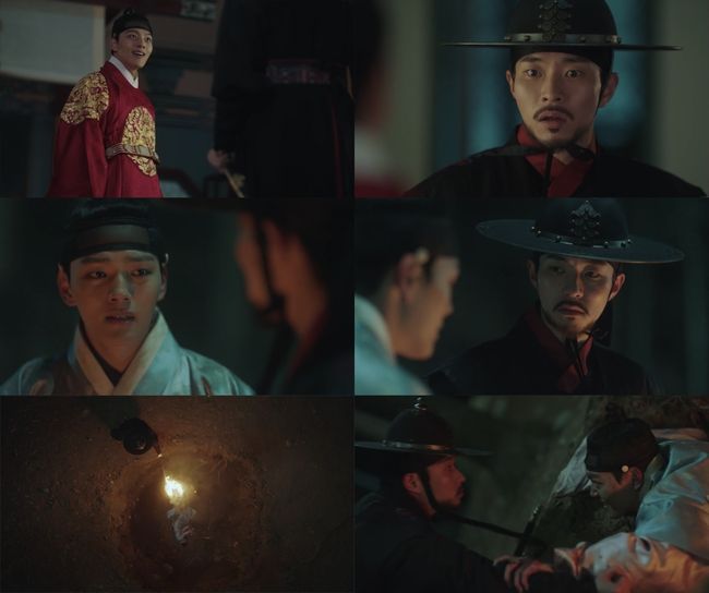 이날 방송에서 무영은 궁으로 돌아온 이헌(여진구 분)과 하선이 한자리에 있는 것을 목격했고, 자신을 향해 칼을 겨누는 이헌의 폭주에 그가 진짜 임금임을 알게 됐다. 이어, 이헌으로부터 하선을 죽이라는 명을 받은 무영은 하선을 산속 구덩이에 밀어 넣은 채 환궁했지만, 재차 그의 목을 가져오라는 왕명을 따르기 위해 다시 구덩이를 찾으며 하선에게 붙잡히고 만 것.