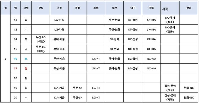 경기 개시 시간은 오후 1시며 연장전과 더블헤더는 실시하지 않고 취소된 경기는 재편성되지 않는다. /what@osen.co.kr