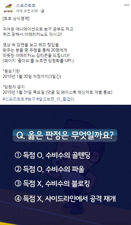 스토츠토토 공식 페이스북, 농구 관련 퀴즈 이벤트 실시