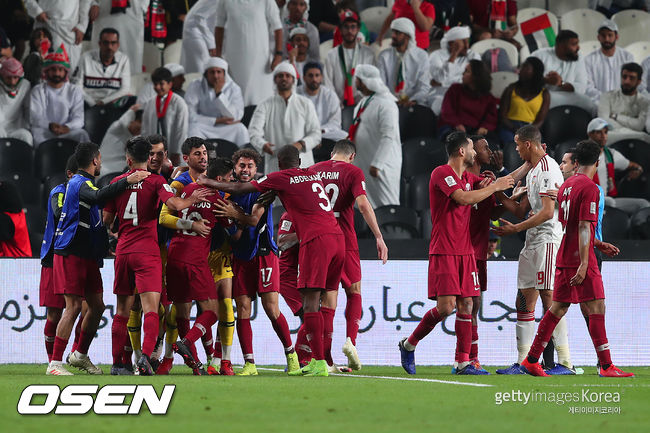 후반 45분에는 이스마일 아메드가 공과 관계 없이 알 하지리를 팔꿈치로 가격했다. 주심은 VAR로 확인 후 퇴장 조치했다. 뒤숭숭한 분위기 속에서 후반 추가시간에 교체투입된 카타르의 하미드 이스마엘이 또 한번 골망을 흔들면서 4-0으로 경기가 마무리됐다. / 10bird@osen.co.kr