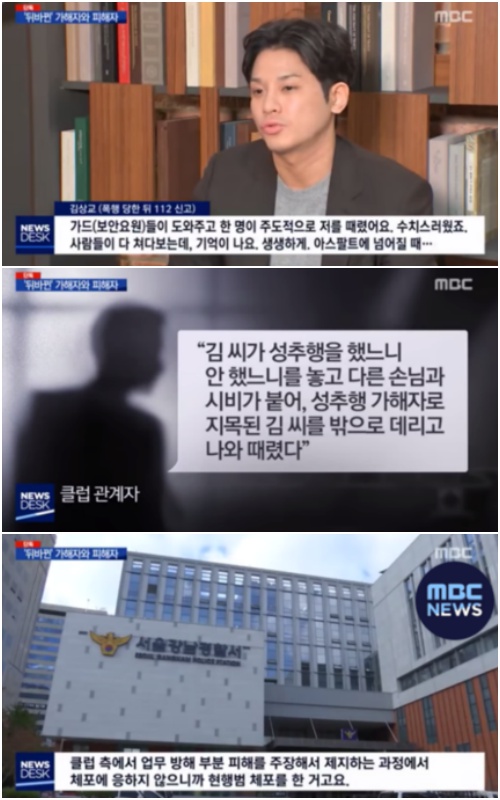 '뉴스데스크' 측은 클럽의 손님이었던 20대 남성 김 모씨가 클럽 이사 장 모씨, 보안 요원 등에게 집단 폭행을 당했지만, 경찰은 맞은 손님만 체포하고 가해자와 피해자가 뒤바뀌었다고 전했다. 김 씨는 "가드(보안요원)들이 도와주고 한 명이 주도적으로 나를 때렸다"고 주장했다.