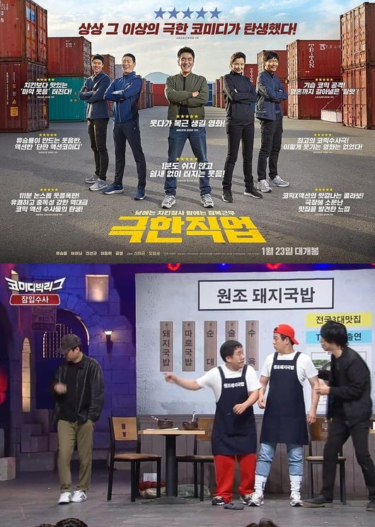 이는 최근 흥행가도를 달리고 있는 영화 '극한직업'의 콘셉트와 닮았다. '극한직업'은 해체 위기의 마약반 5인방이 범죄조직 소탕을 위해 위장창업한 '마약치킨'이 일약 맛집으로 입소문을 타게 되면서 벌어지는 이야기를 담은 코믹 수사극이다.