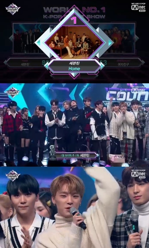 31일 방송된 Mnet '엠카운트다운'에서는 세븐틴 'Home'과 여자친구 '해야'가 1위 후보에 올랐다. 집계 결과 이번 주 1위의 주인공은 세븐틴이었다.