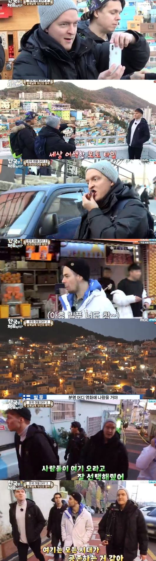 알록달록한 감천문화마을의 매력에 푹 빠졌다. 빌레는 "여기는 모든 시대가 공존하는 것 같아. 현대부터 60년대까지"라고 전했다. 빌푸도 "성공적인 여행이었어. 사람들이 여기오라고 잘 선택해준 것 같다"라고 말했다. 저녁의 풍경에도 "영화의 한장면 같다"고 전했다.