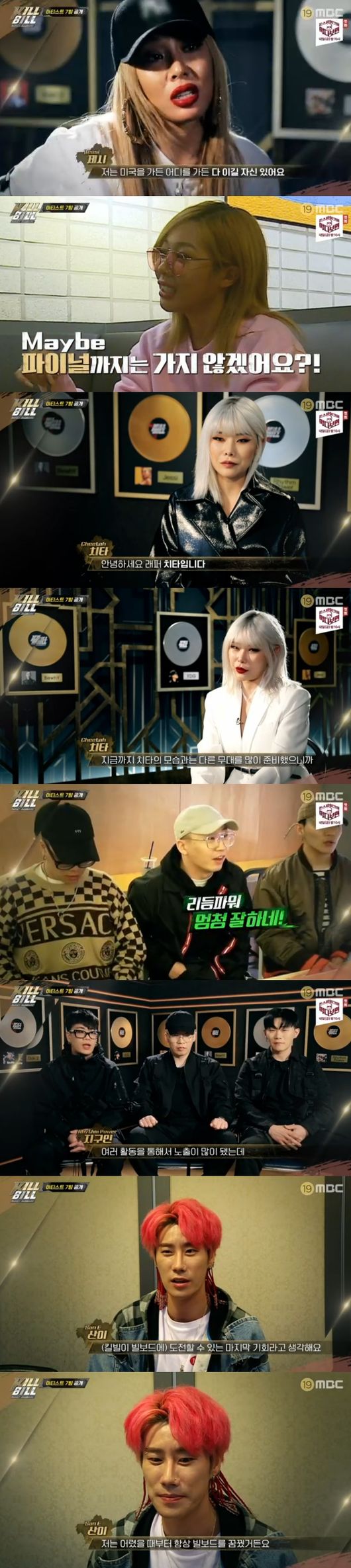 이어 본인까지 포함된 각자가 생각하는 무대 순위를 꼽았다. 치열할 경쟁 속에서 경연 라인업이 구성된 것. MC 김종국은 "1차 경연 후 한 아티스트는 반드시 탈락한다"면서 심사위원은 오직 100% 관객평가로 탈락 아티스트가 결정된다고 전했다. 도끼는 "힙합이 아직까지 대세라면 1등할 수 있을 것, 랩으로서 자신있다"고 했다.