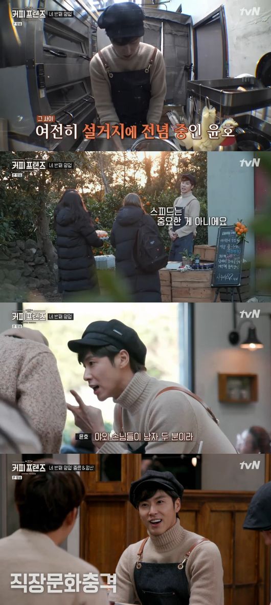 제주도의 한 감귤농장에서 카페를 운영하며 수익금을 전액 기부하는 이야기를 담은 tvN 예능 프로그램 ‘커피프렌즈’의 네 번째 영업에는 유노윤호가 일일 아르바이트생으로 합류해 맹활약하며 시청자들의 시선을 사로잡았다.