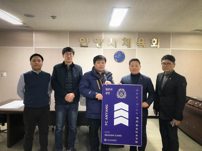 지난달 31일 오전 FC안양 지원부서인 안양시 체육생활과가 FC안양 연간회원권 구매 릴레이에 동참했다. 또한 안양시 체육회 임준 사무국장을 비롯한 임·직원들이 한 자리에 모여 2019 FC안양 연간회원권을 구매했다.