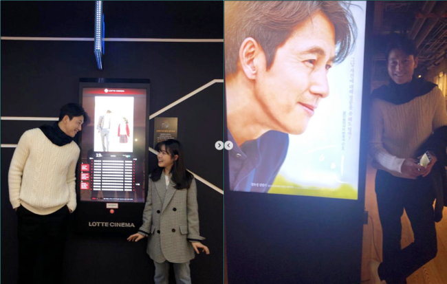사진 속에는 정우성과 김향기가 극장 앞에서 포스터와 똑같은 포즈를 취하고 있다.
