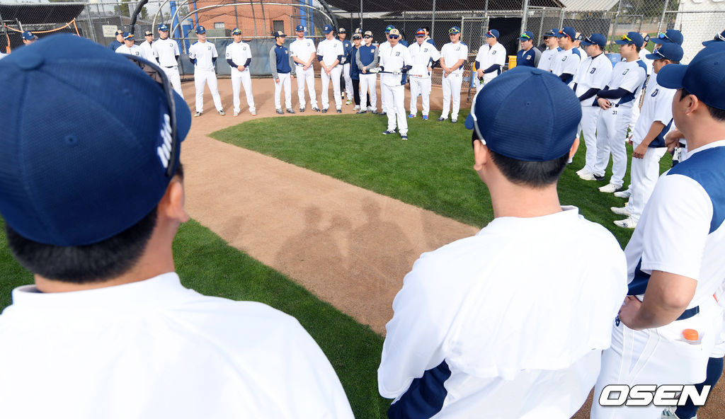 NC 다이노스의 스프링캠프가 한창 진행되고 있는 미국 애리조나주 투산에 위치한 레이드파크. 3일(이하 한국시간) 두 번째 훈련을 앞두고 손민한 수석코치는 선수들 앞에 서서 ‘공지사항’을 전달했다.