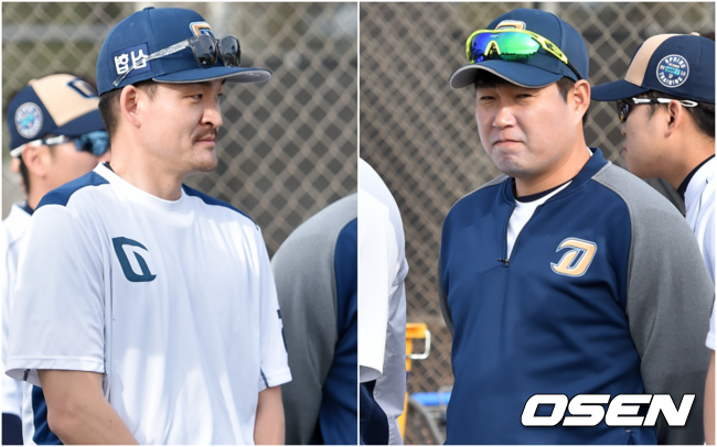 1987년생 동갑내기 양의지는 중,고등학교 때부터 경기에서 만나는 등 인연을 맺은 뒤 경찰 야구단에서 같은 유니폼을 입고 한솥밥을 먹었다. 2017년 월드베이스볼클래식(WBC)에도 나란히 뽑히면서 태극마크를 단 두 절친이 마침내 NC 다이노스에서 만났다. 양의지는 다시 받게 된 친구의 강속구에 설렘을 나타냈고, 원종현은 '리그 정상 포수'가 된 친구와 함께 호흡을 맞추는 기대를 갖고 함께 시즌 준비에 나섰다. / eastsea@osen.co.kr