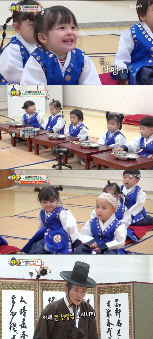 박나은과 친구들의 수업은 흥미진진했다. 박주호는 칭얼 대는 건후로 인해서 자리를 비웠고, 주호가 나가자 나은의 친구 서현이는 서럽게 눈물을 흘렸다. 박나은의 또 다른 친구인 미소는 수업시간에 앉아서 잠을 잤다. 미소는 자신을 깨우러 온 선생님의 품에 안겨서 재워달라고 했다. 귀여운 미소의 모습에 다들 미소를 지었다. 박나은은 신체발부 수지부모 한자 읽기에 이어 아버지 이름 말하기도 성공하면서 우등생 다운 면모를 자랑했다. 그 보상으로 선생님은 나은이에게 유과를 선물했다.