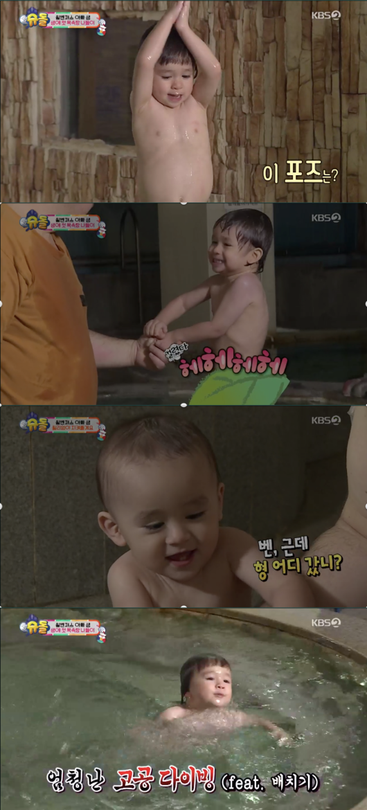 3일 오후 방송된 KBS 2TV ‘슈퍼맨이 돌아왔다’에서 처음으로 코끼를 본 설수대와 처음으로 예절교육을 받은 건나블리 그리고 처음으로 목욕탕을 찾은 윌벤져스에 모습이 그려졌다.