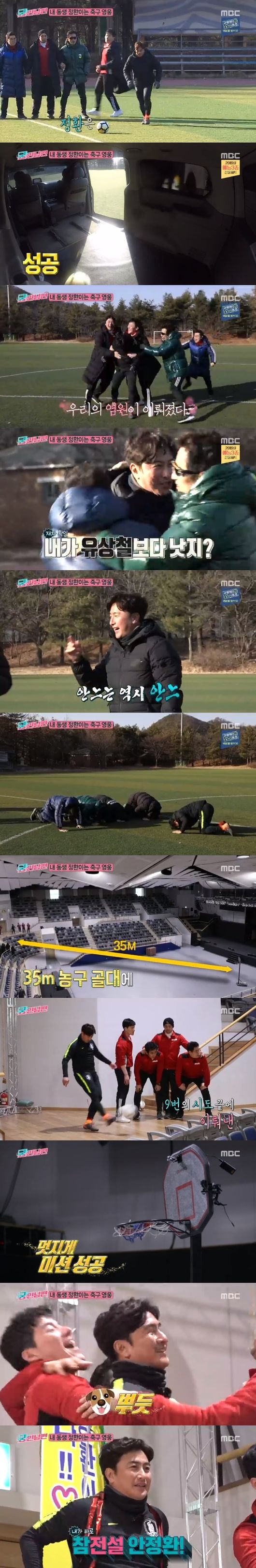 "유상철 선수가 19번만에 성공했다"며 승부욕을 자극했고, 안정환은 계속 노력해 15번 만에 성공했다. 안정환은 "내가 유상철보다 낫지?"라며 좋아했다. 멤버들은 안느 안정환에게 큰절을 올렸다.