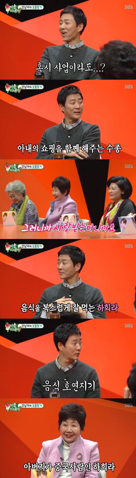 쇼핑에 대해 묻자, 최수정은 "거의 같이 한다, 아내 쇼핑 따라다니며 구경하는 편"이라 했고, 母들은 "그러니까 사랑받는다"며 칭찬일색했다.