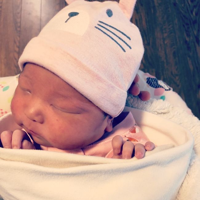 공개된 사진 속에는 토끼 모자를 쓴 채 잠들어 있는 선예의 딸 유진의 모습이 담겨 있다.