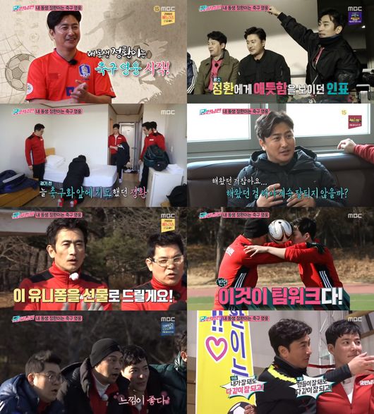 이후 훈련에 들어간 네 남편들은 안정환의 지시에 따라 기본기 훈련부터 헤딩, 2인 1조 이마로 공 나르기, 발리슛까지 착실히 배우는 것은 물론 건강한 웃음까지 안겼다.