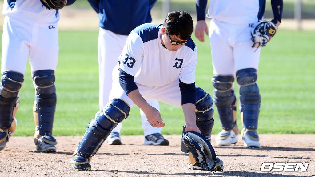 3일(한국시간) 미국 애리조나 투산 레이드 파크에 스프링캠프를 차린 NC 다이노스. 양의지가 훈련에 임하고 있다.