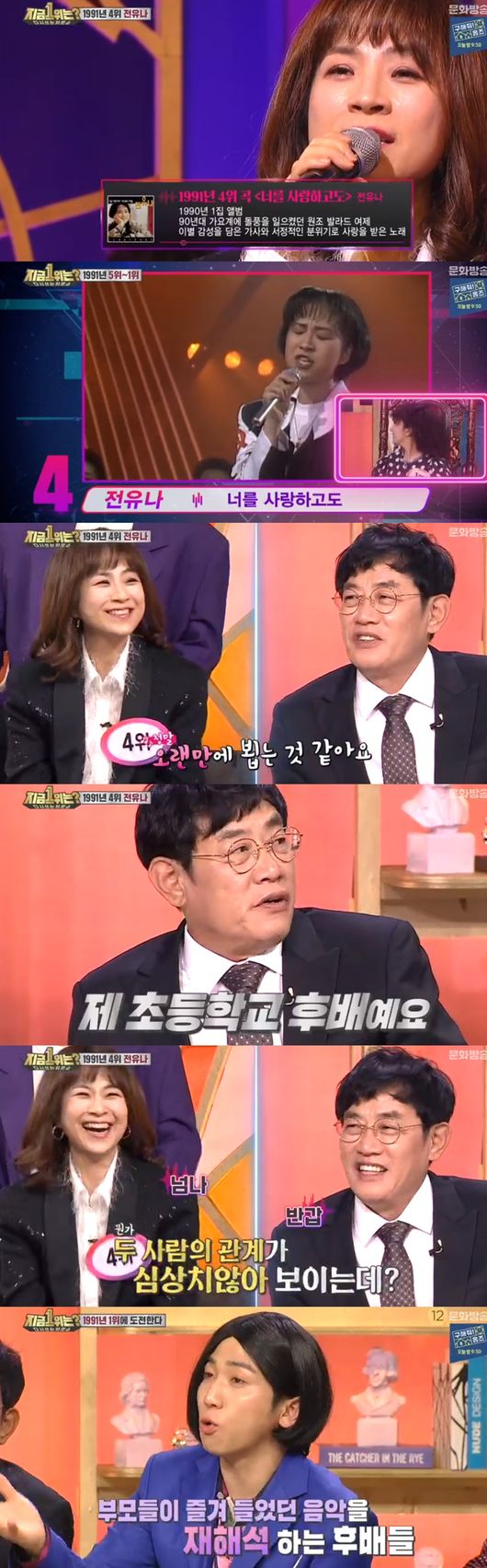 이경규는 "개인적으로 전유나씨는 초등학교 후배다. 초량 초등학교에 가수 분들이 많이 나왔다. 나훈아, 수와진, 전유나 등"이라고 설명했다.