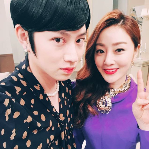 사진 속에서 김희철은 최근 종영한 JTBC 드라마 ‘SKY 캐슬’에서 진진희로 열연을 펼친 오나라와 셀카를 찍고 있는 모습이다.