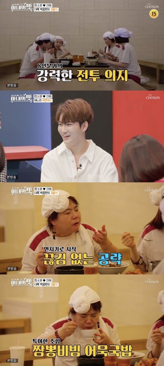 돌솥비빔밥, 전주비빔밥부터 짜장면, 탕수육, 치킨, 미역국까지 8인분을 시킨 시어머니는 애피타이저로 달걀 한 판을 구매하는 등 먹방 대모의 면모를 뽐냈다.
