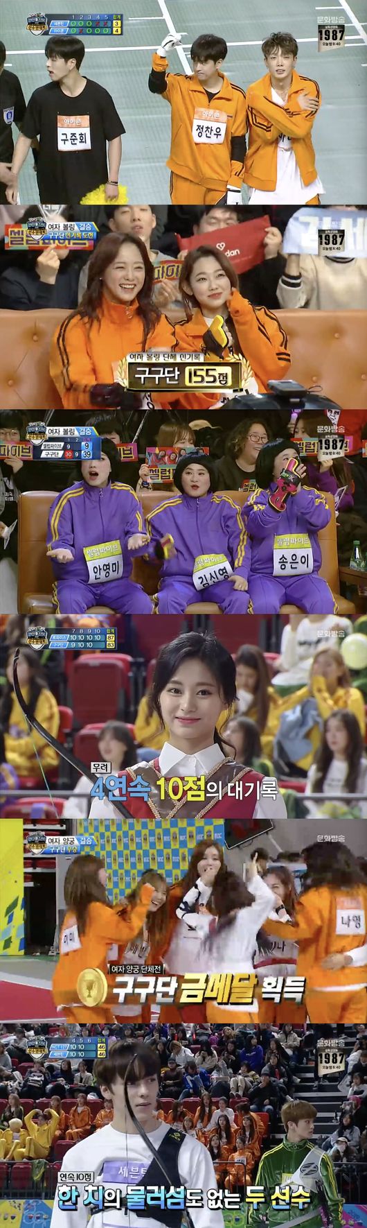 또한 트와이스와 구구단의 여자 양궁 결승전이 펼쳐졌다. 구구단 멤버들이 평균 9점을 쏘며 점수를 리드했지만 트와이스의 마지막 주자 쯔위가 4연속으로 10점을 쏘며 바짝 뒤를 쫓았다. 하지만 구구단 역시 연속 10점을 쏘며 틈을 주지 않았고 결국 구구단이 지난 대회에 이어 최종 우승을 거머쥐었다.
