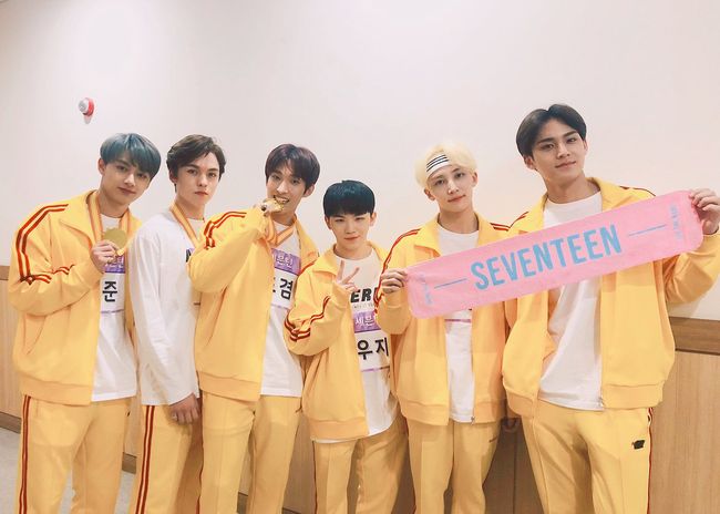 함께 공개된 사진에서 세븐틴 멤버 준, 버논, 도겸, 우지, 정한, 민규는 노랑 체육복을 입고 카메라를 보며 활짝 웃고 있다. 남자 양궁 경기에서 금메달을 따낸 도겸, 버논, 준은 금메달을 목에 걸고 위풍당당한 자태를 뽐내 팬들을 더욱 흐뭇하게 만들고 있다.