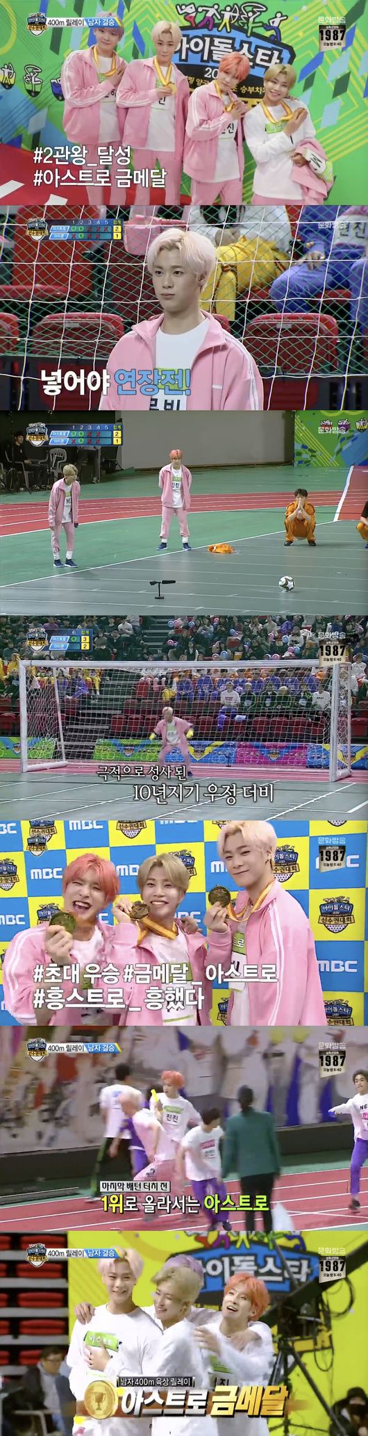 이날 아스트로는 승부차기와 육상에서 활약을 펼쳤다. 먼저 골든차일드와 승부차기 8강전에서 만난 아스트로 멤버들은 넘치는 흥으로 연속으로 골을 성공시켰고 골든차일드는 연이어 실축, 3대2로 아스트로가 4강전에 진출했다.