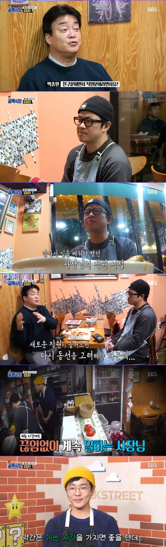 이날 피자집부터 살펴봤다. 피자집사장은 친구라는 직원과 함께 일했다. 하지만 쉬는 타임없이 숨막히는 일의 동선을 부였다. 결국 백종원이 내려가 두 사람이 일하는 불편한 모습을 언급했다.사장은 "혼자 일할 때 동선 유지, 동선 걸리면 힘들다고 미리 얘기했다"면서 직원 쓴건 처음이기에 혼자가 익숙하다고 했다.