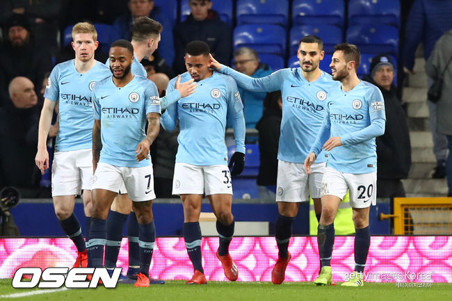 맨체스터 시티는 7일(한국시간) 영국 리버풀 구디슨 파크에서 열린 2018-2019 EPL 27라운드 에버튼전서 2-0의 승리를 기록했다.