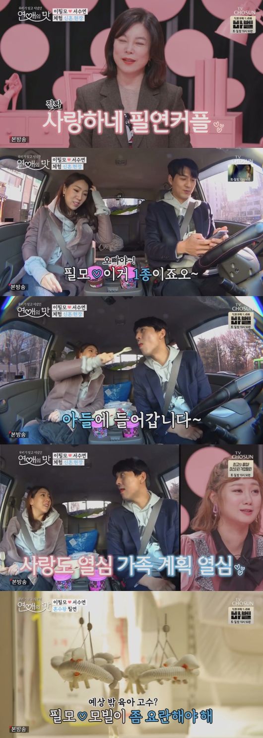 차 안에서도 이들의 애교 섞인 말투가 끊이지 않아 보는 이들에게 닭살을 유발했다. 서수연은 이필모의 입 안에 음식을 넣어줬고, 그는 행복한 미소를 지으며 맛있게 먹었다.
