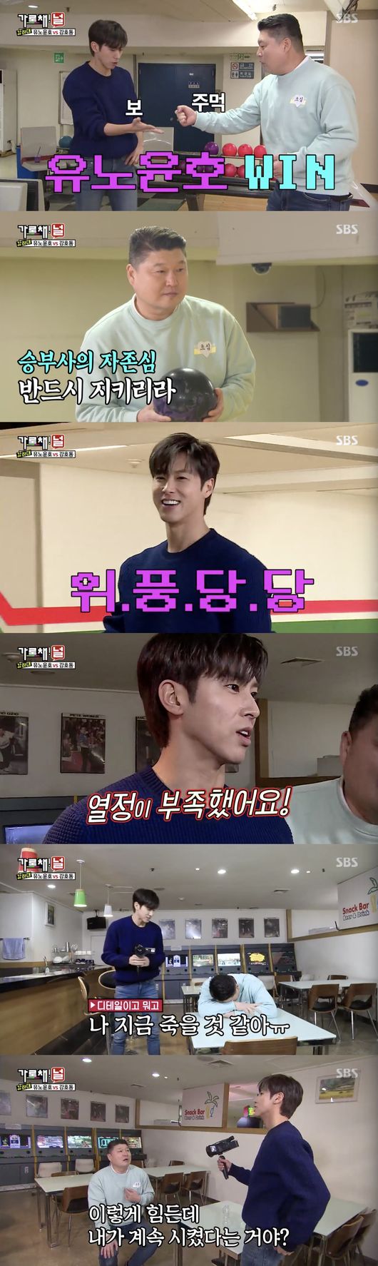"취미가 마이볼(주문 제작한 공)을 가진 분들을 하우스볼(볼링장에 있는 기본 공)로 이기는 것"이라는 유노윤호는 전용 볼링화와 볼링공을 챙겨온 강호동과 진 사람이 크럼핑하며 음료수 주문하기를 건 볼링 내기를 했고 스트라이크를 치며 승리를 거뒀다.