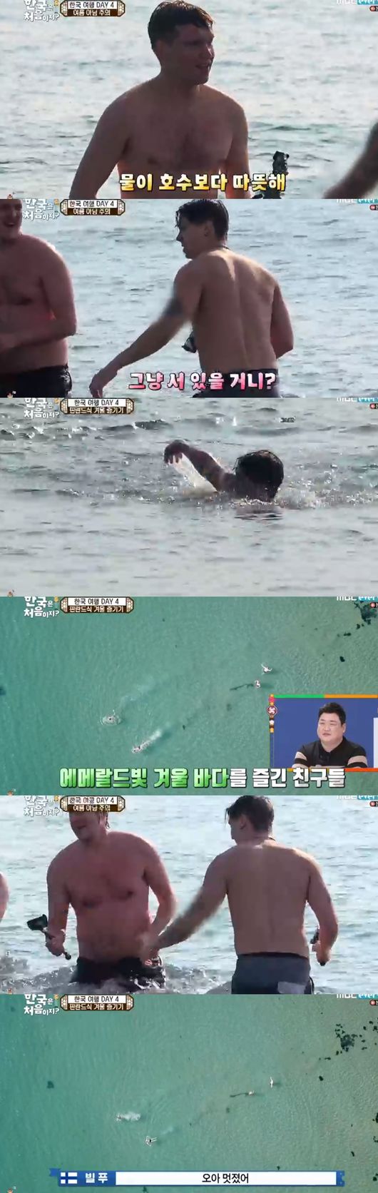 이후 친구들은 몸을 녹이기 위해 찜질방으로 갔다. "바다 수영하고 찜질하니까 좋다"고 휴식을 취했다. 찜질방에서 식혜를 본 빌푸가 "저거 뭐야? 우리도 먹자"고 했다. 페트리가 쌀로 만든 음료 '식혜'라고 설명했다.