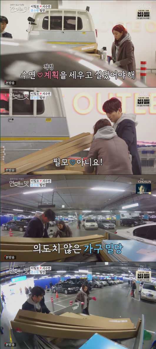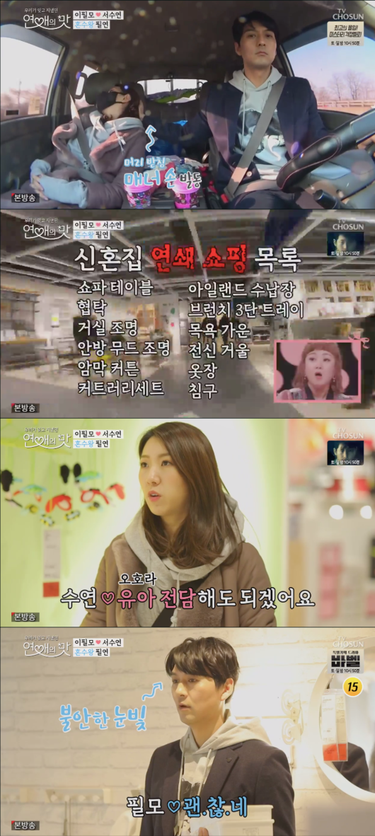 지난 7일 오후 방송된 TV조선 ‘연애의 맛’에서 이필모와 서수연 커플이 신혼집 리모델링을 위해 가구와 인테리어 소품을 준비하는 모습이 그려졌다.