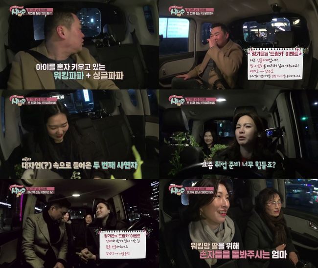 이를 듣던 싱글파파는 “주변에서는 아이와 단둘이 힘들겠다고 하지만 우리 둘은 나름 재미있게 살고 있다. 이제는 아이가 옆에 없으면 못 살 것 같다”라고 전했고, 정가은은 “처음에는 ‘이 아이를 혼자 어떻게 하지’라는 생각에 막막했다. 그러나 이제는 아이 때문에 힘을 얻는다. 아이 덕분에 산다”라고 덧붙였다.