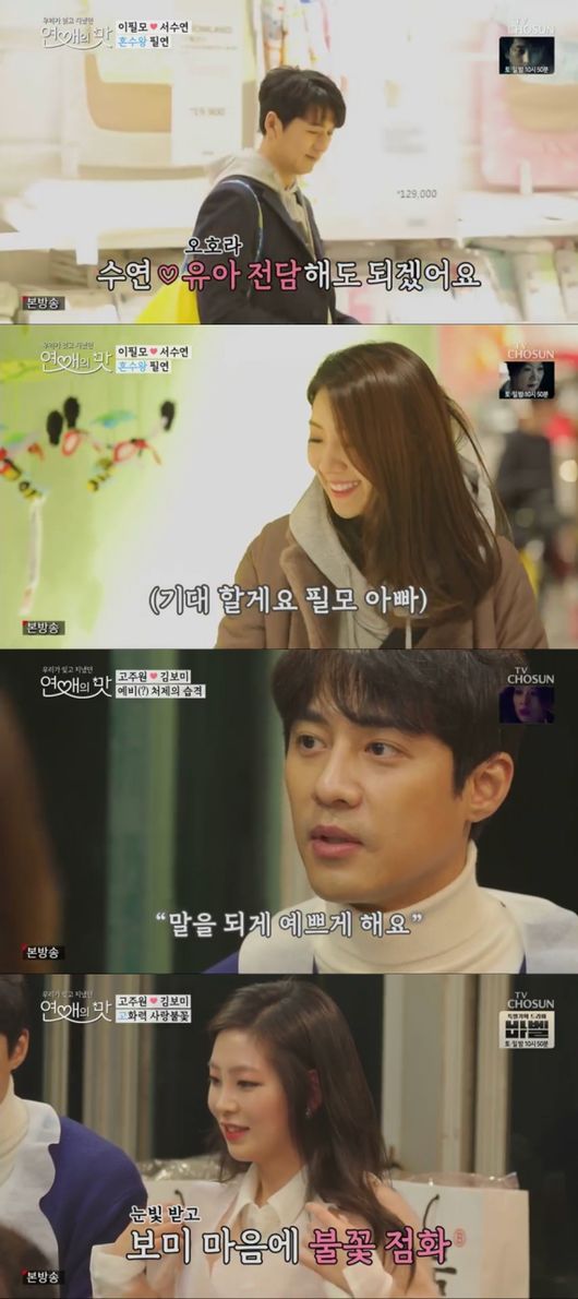 결혼을 앞둔 이필모 서수연 커플부터 장거리 연애를 시작한 고주원 김보미까지, 밀당은 1도 찾아볼 수 없는 순도 100% 직진 연애에 더욱 달달해진 '연애의 맛'이다.
