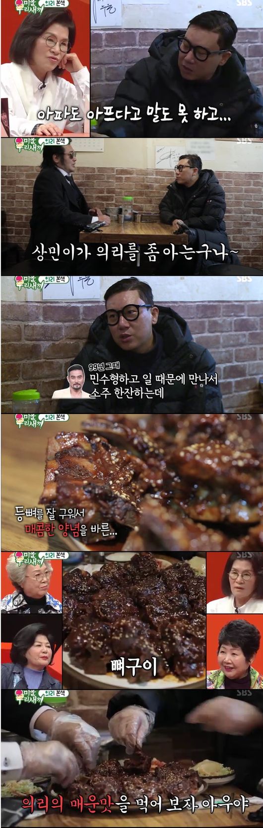주문한 매운맛 뼈구이가 등장, 김보성은 "의리의 매운맛을 봐라"면서 "매운 고통으로 희열을 느껴라"고 권유해 웃음을 안겼다.